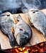 Het is lastig om Hele vis goed te vacuumeren, door uitstekende vinnen of graten kan het zakje soms weer lek gaan  dus deze verpakken we niet altijd vacuüm.